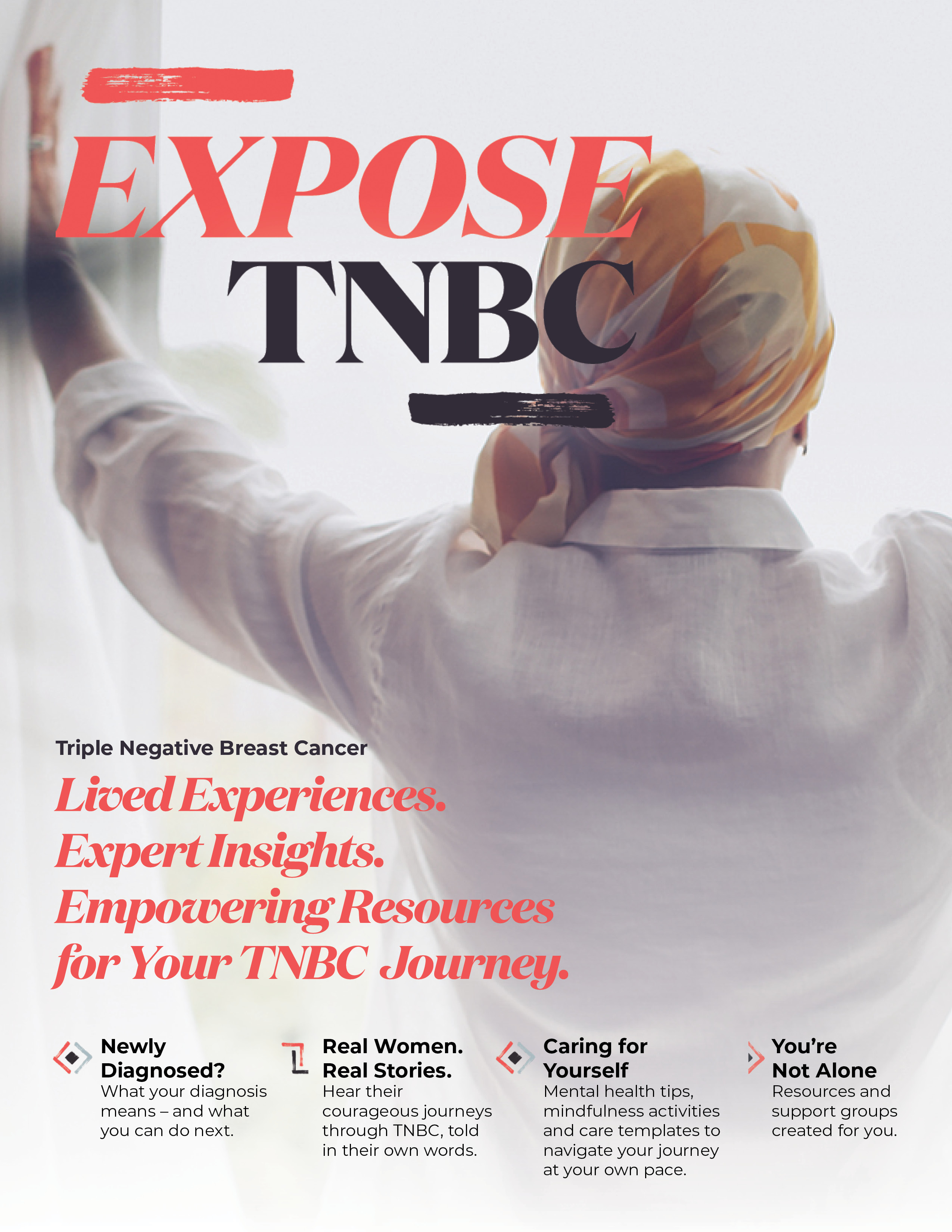 The Expose TNBC Magazine features disease information, authentic patient stories, mental health insights, and more helpful tools to support you as you navigate your TNBC diagnosis.